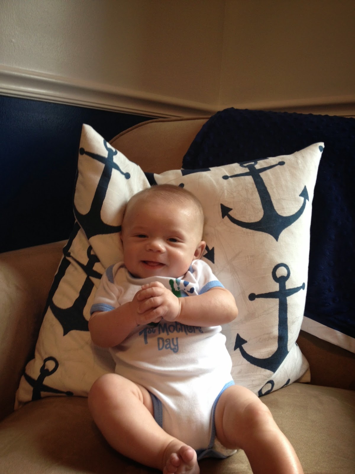 You officially moved to the 8 oz bottles this month. It made me sad to pack away your little bottles because everything seems to be happening so quickly. We also started adding rice cereal to your night time bottle to help with that mean, old reflux of yours. You seem to enjoy it, and I'm pretty partial to it, also, because you're sleeping like a champ after that last bottle. I'm probably going to jinx myself by typing this, but, lately, you've been sleeping through the night! This mommy is so grateful to have long periods of sleep again!